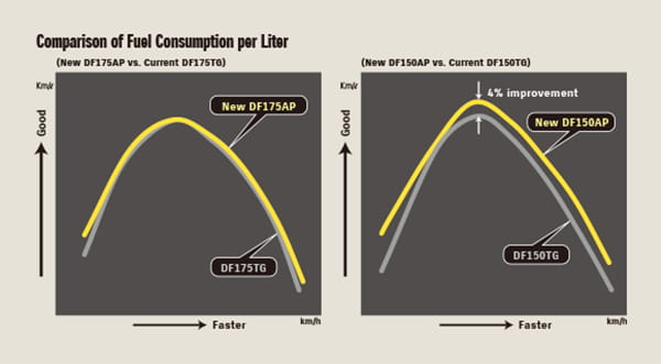 • Data used in the graphs were obtained through "In-House Suzuki Testing" under uniformed conditions. Results will vary depending upon operating conditions (boat design, size, weight, weather, etc.)